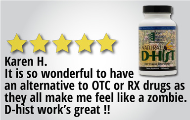 “D-Hist keeps my sinuses clear and healthy. It is my #1 supplement I can't be without! I use to suffer from sinus infections twice a year and thanks to D-Hist, my sinuses stay healthy. I have taken D-Hist for over 8 years and will continue for years to come!” – Jayne K on Natural D-Hist